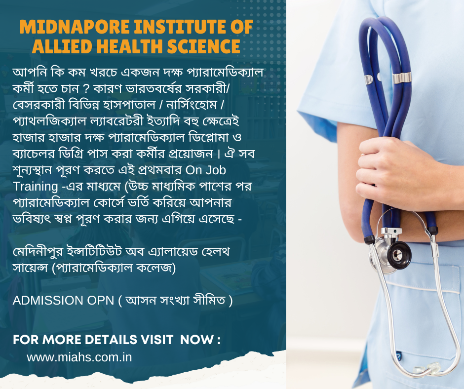 The healthcare industry in West Bengal is booming, creating a high demand for skilled paramedical professionals. Choosing the right college to pursue your paramedical education is crucial for a successful career. Here, Midnapore Institute of Allied Health Science is the best paramedical college (Affiliated to NIILM UNIVERSITY, AUTHORIZED BY C.BSS, / AICVT/ FACI )in West Bengal . The college has embarked upon the path of academics to make itself one of the best institute in the state. With the state art of infrastructure, well qualified faculty, and the motto: commitment to excellence. Choosing the right paramedical college is crucial for your career trajectory.